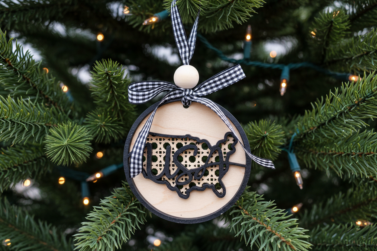 Each USA rattan ornament is proudly handmade in North Carolina with careful attention to detail. The 2-layer construction creates beautiful dimension, and the hand-tied buffalo plaid ribbon adds the perfect finishing touch. Supporting American craftsmanship, one ornament at a time!